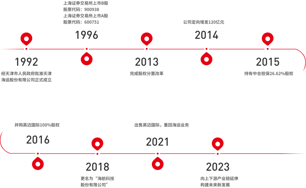 海航科技股份有限公司(以下簡稱“海航科技”,曾用名“天津市海運(yùn)股份有限公司”、“天津天海投資發(fā)展有限公司”)是經(jīng)天津市政府批準(zhǔn)于1992年12月1日設(shè)立的股份有限公司,股票分別在上海證券交易所主板A股(證券代碼600751)和B股(證券代碼900938)上市,公司總股本28.99億股(其中A股25.73億股,B股3.26億股)。主要業(yè)務(wù)包括航運(yùn)、商品貿(mào)易、股權(quán)投資、物業(yè)經(jīng)營等方面。