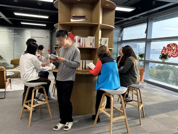 美觀的書架、雅致的桌椅、養(yǎng)眼的綠植,將海航科技五樓的空間打造成舒適的主題教育讀書角,讓理論學(xué)習(xí)“微陣地”設(shè)立在日常途經(jīng)的地方,達到書在手邊、觸手即得的效果,隨時可以翻閱《習(xí)近平著作選讀》《習(xí)近平新時代中國特色社會主義思想學(xué)習(xí)綱要(2023版)》《黨的二十大報告學(xué)習(xí)輔導(dǎo)百問》《論黨的自我革命》等主題教育理論書籍,讓新時代理念深入人心,為全體黨員干部筑牢信仰之基、補足精神之鈣、把穩(wěn)思想之舵。